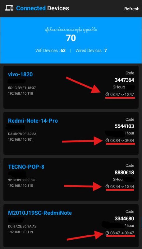 အဲ့လို ကျော်သုံးလာတာတွေကို အလွယ်ရှာပေးနိုင်မှာက Ruijie Voucher Manager App ထဲက Connected Device Feature ပါ။