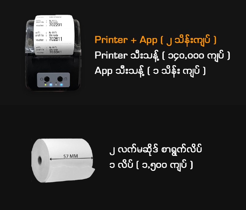 Printer + Ruijie Voucher Manager App တွဲရက် - ၂ သိန်းကျပ်