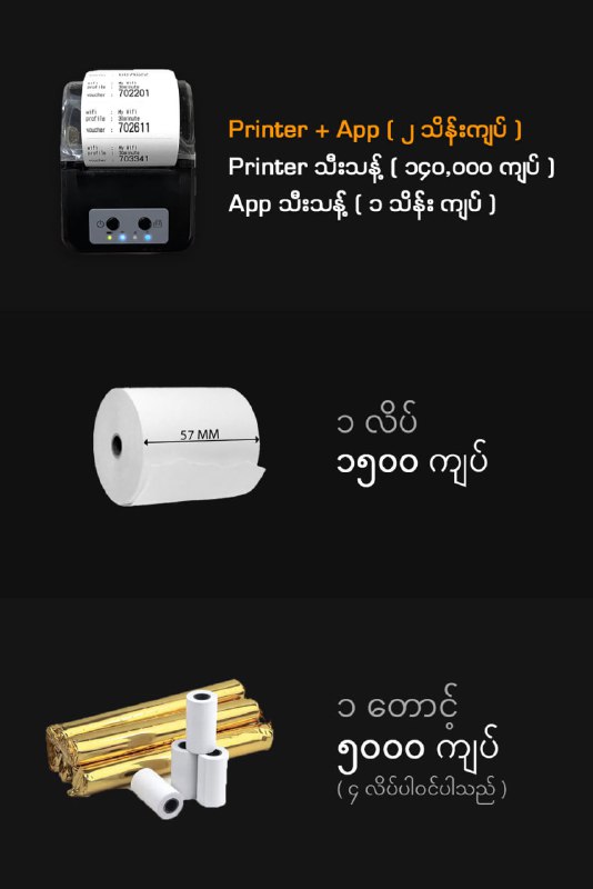 - Printer / App အရောင်းအတွက် စာရင်းတွေ