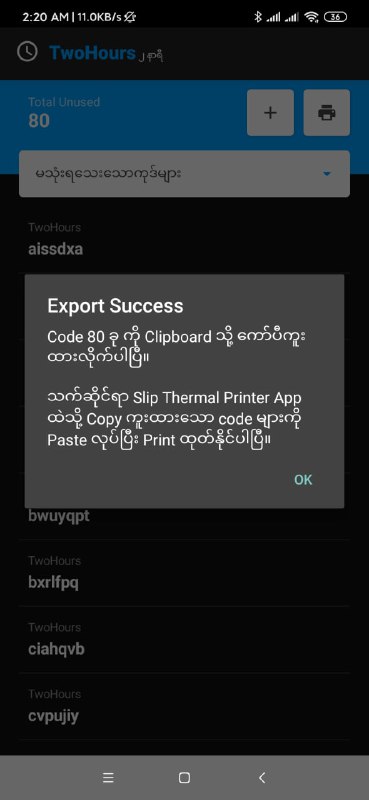 Voucher Code တွေကို အလွယ်တစ်ကူ Print နိုင်တဲ့ App လေး။